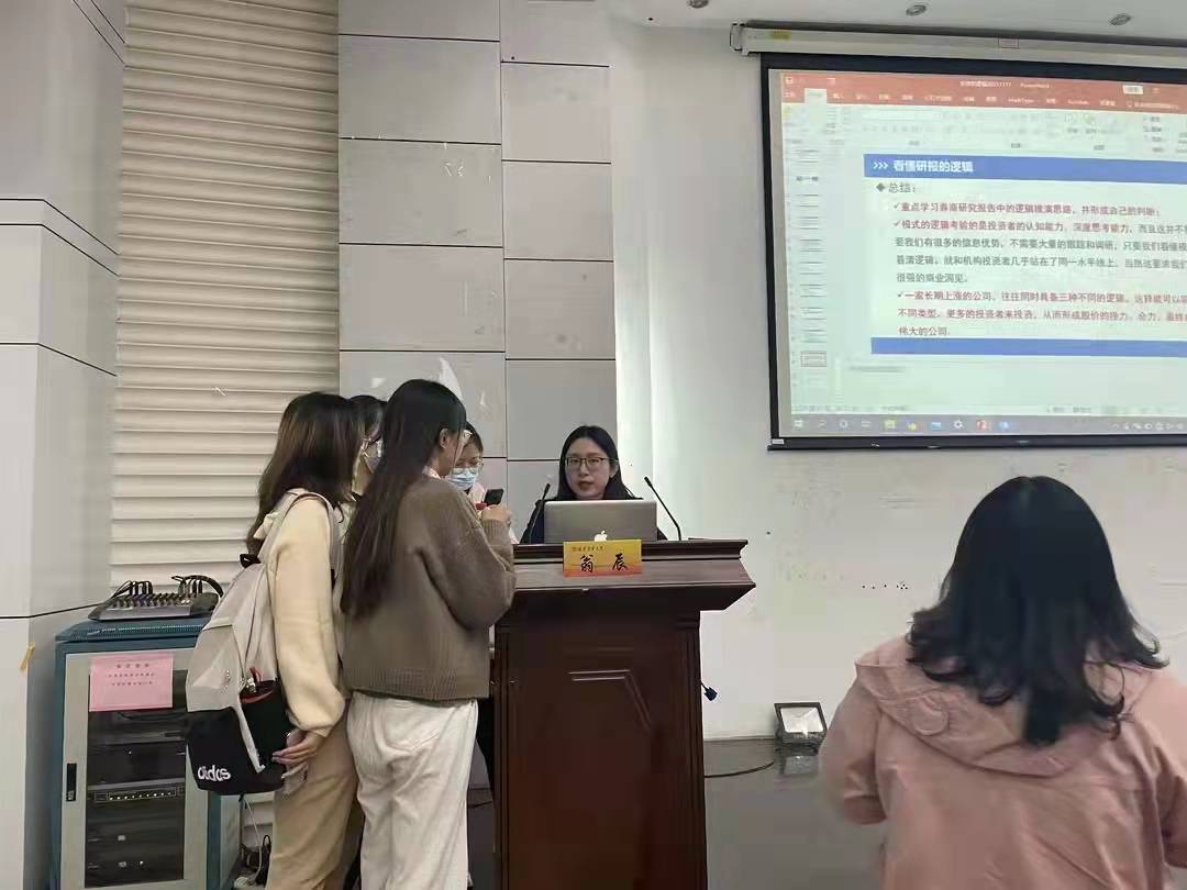 11月18日下午,西瓜看球 教师第一党支部副书记翁辰老师受邀参加金融节模拟股市大赛,在仙林校区德经楼二楼双登报告厅给同学们讲授题为“投资的逻辑”主题讲座。