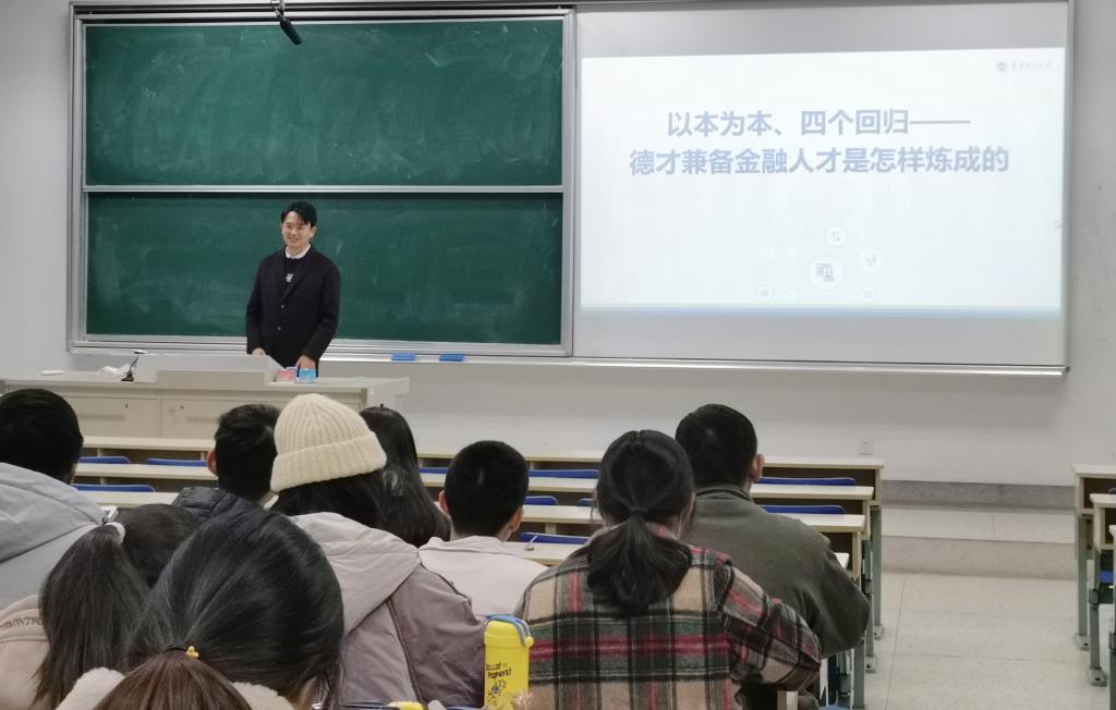 11月30日晚,西瓜看球app 金融学本科第三党支部邀请政治辅导员张成院长在德经楼115教室讲授党课,主题为“以本为本,四个回归——德才兼备金融人才是怎样练成的”,本支部全体党员参加。