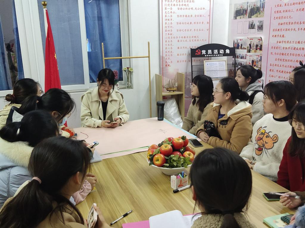 金融学本科生第二党支部在仙林校区五号宿管站党员活动角集中,学习中华人民共和国简史,支部全部党员参加了本次学习。