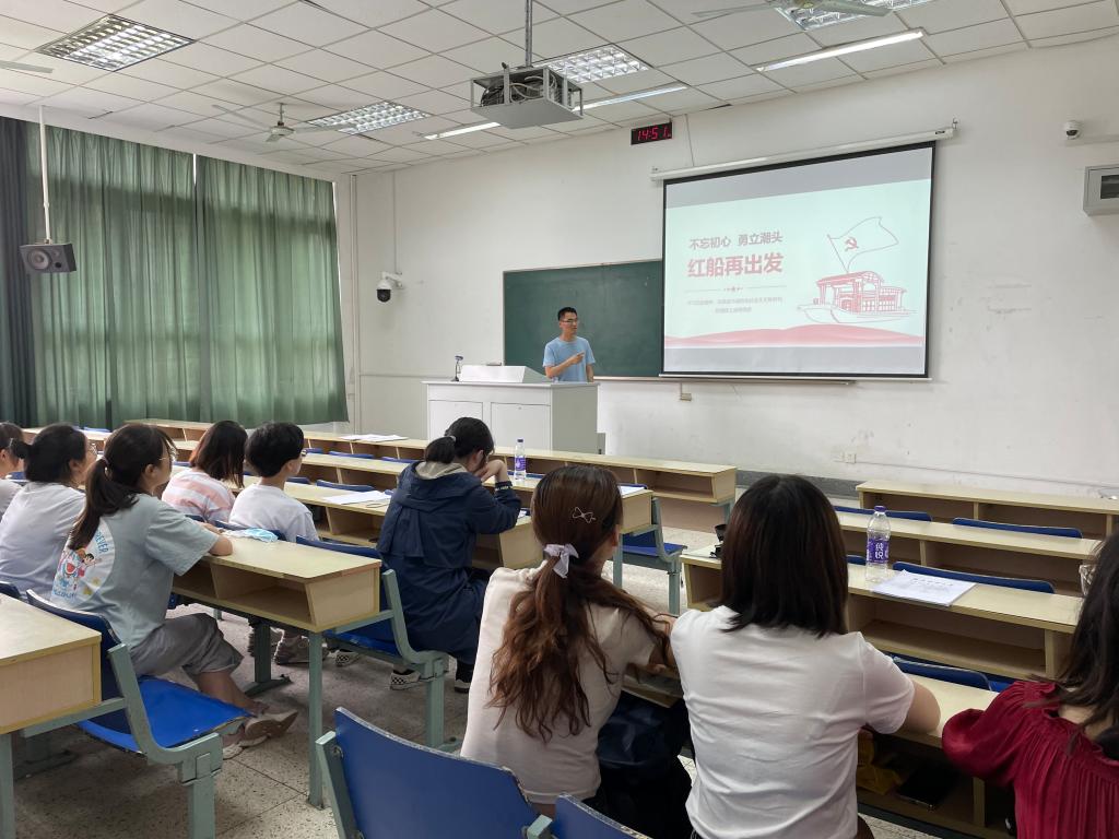 本次活动主要分为三部分。首先,由支部书记王连超老师带领大家进行理论教学,阐述了中国共产党自诞生以来所经历的巨大变革以及所取得的革命成就和成就。理论学习完成后,所有党员观看视频,了解了红船精神的内涵:红船精神,开天辟地,敢为人先的精神;坚定理想,坚韧不拔的奋斗精神;立党为公,忠诚于人民的奉献精神。最后,全体党员进行交流讨论,孙千惠同学表示:作为大学生党员,在中国共产党成立100周年之际,我们要认真学习“红船精神”,“弘扬红船精神,牢记初心使命”,不仅要从这艘“红船”凯歌行进的历程中汲取精神养料,更要作为红船启航地交出一份圆满的答卷。吴亚娟同学表示:“红船精神”承载着我们党“原生态的初心和使命”,重温红船的历史沧桑,在继承和弘扬“红船精神”中永葆党的先进性,进一步激发为中国特色社会主义事业奋斗的信念和力量。