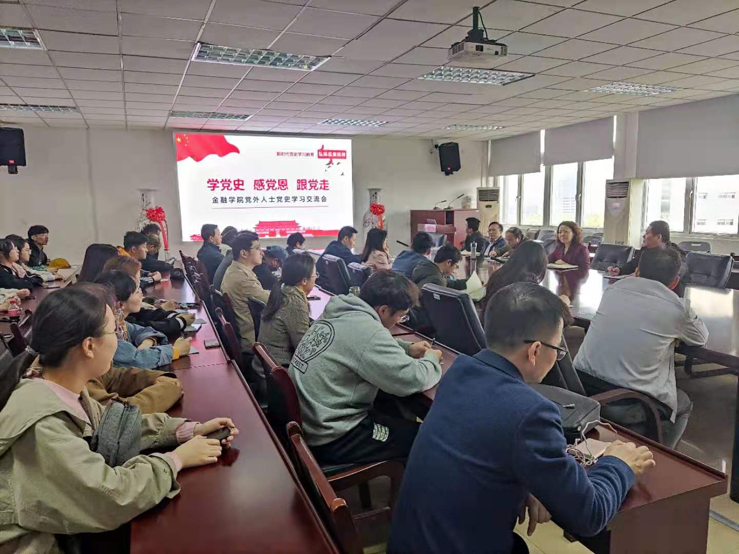 4月7日,西瓜看球app 党内外人士齐聚德经楼508,开展党内外人士党史学习教育交流。学院党政领导、党外青年教师、学生代表等参加交流。本次交流以“奋斗百年路”为起点,延循着“启航新征程”的主线轴展开。大家敞开心扉交流了学习百年党史心得,回顾了与学院共成长的个人经历,更立足当下、联系实际为学院发展献言建策。通过党史学习教育交流,真正让学院党内外人士的思想铸成统一战线,在党史学习教育中汲取前行的力量。