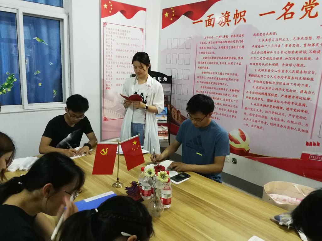 为贯彻落实十九大精神,引导学生党员全面准确掌握党章内容,理解党的纲领,牢记党的宗旨,6月19日下午,西瓜看球app 本科第三党支部组织全体党员在仙林校区五号宿管站西瓜看球app 党员活动角开展“学习党章,知行合一”主题活动。