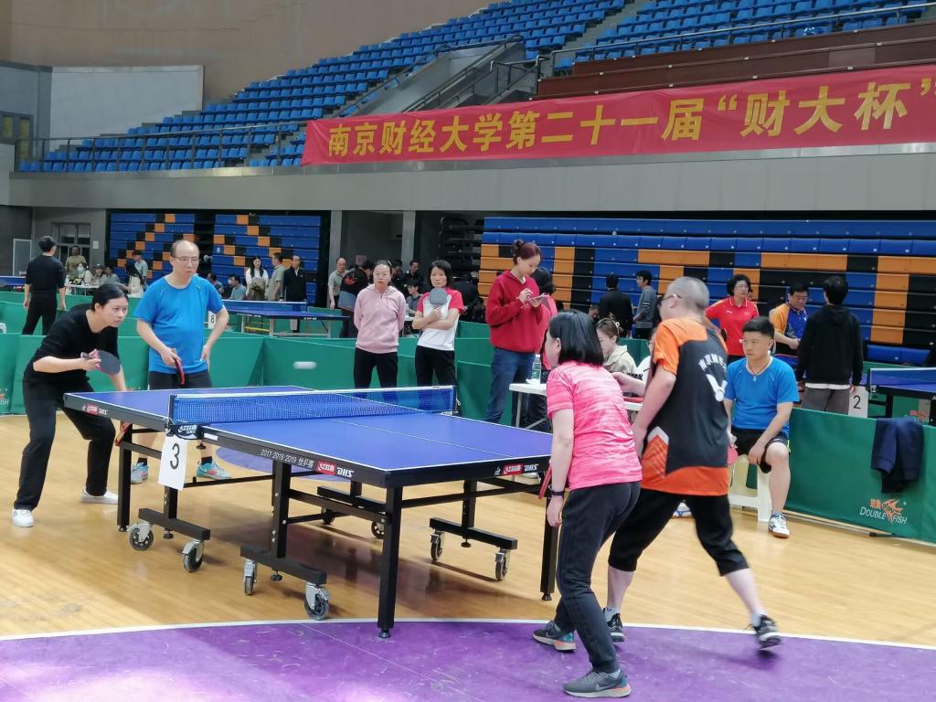4月15日,第二十一届“财大杯”教职工乒乓球(团体)比赛仙林体育馆顺利举行,全校24支队伍参加比赛。