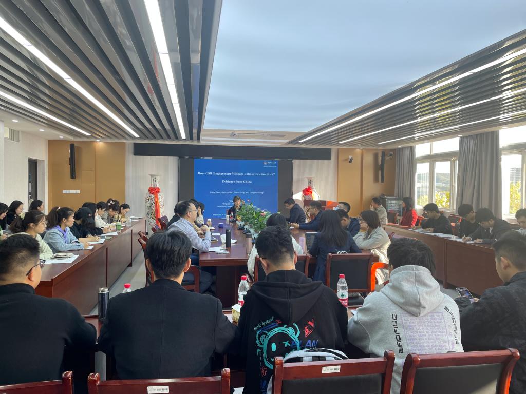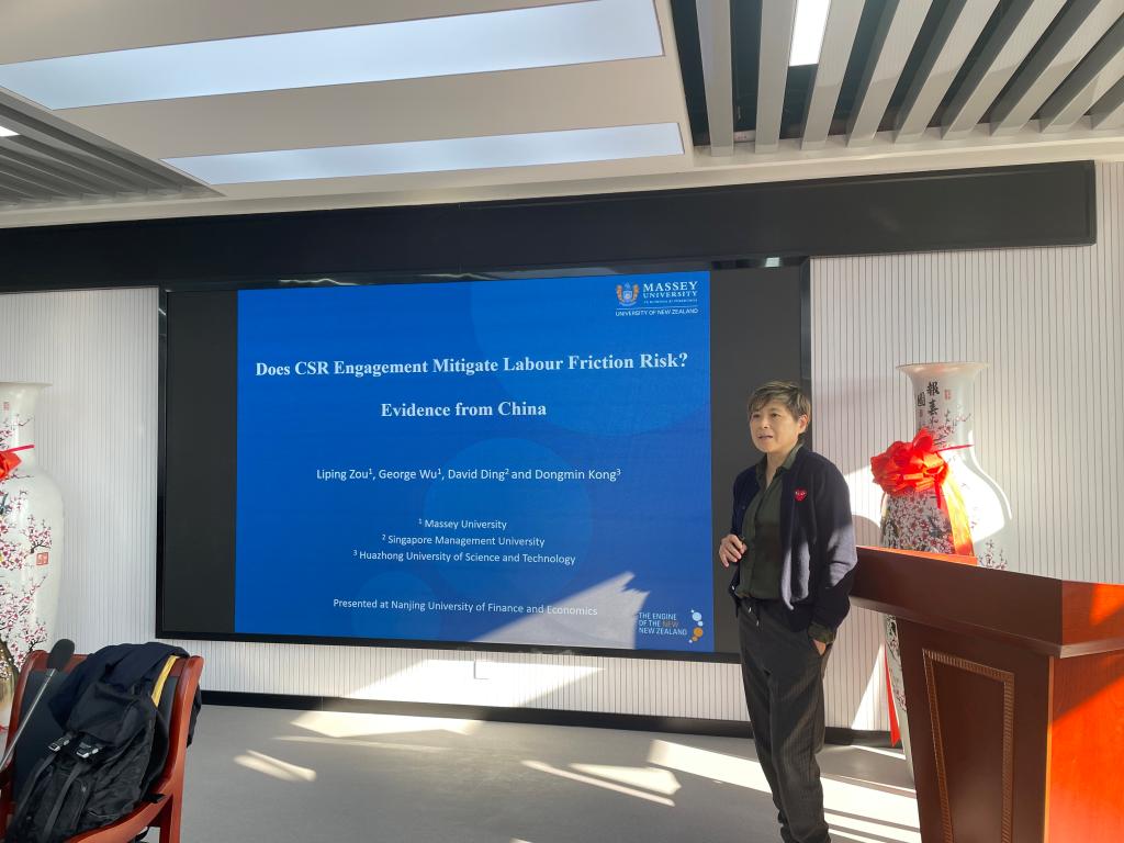 116日下午,应西瓜看球 邀请,新西兰梅西大学商学院邹丽萍教授在仙林校区德经楼508会议室作了题为“Does CSR Engagement Mitigate Labor Friction Risk? China Evidence的学术报告。学院副院长姚定俊教授和青年师生聆听了报告,报告由西瓜看球 副院长尹雷主持。
