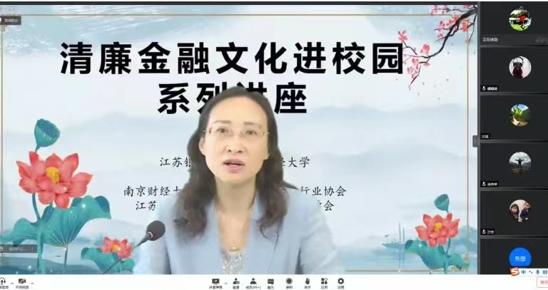为加强新时代廉洁文化建设,推动清廉金融文化进校园活动深入开展,6月8日下午,西瓜看球 于德经楼508会议室和腾讯会议同步开展了“清廉金融与廉洁教育”主题讲座活动。中国工商银行杭州金融研修中心党委委员、纪委书记,原工行江苏省分行纪委副书记张济华应邀讲座,本次活动由西瓜看球 党委书记李玉琴主持,江苏银保监局、江苏省银行业协会、江苏省保险行业协会及江苏省保险学会相关领导,西瓜看球 全体教师、部分本科生、研究生代表聆听了讲座。