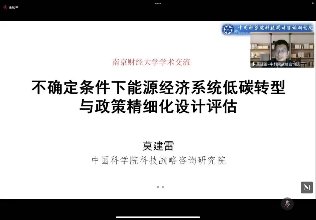 金融高质量发展名家讲坛:中科院莫建雷讲解“不确定条件下能源经济系统低碳转型与政策精细化设计评估”