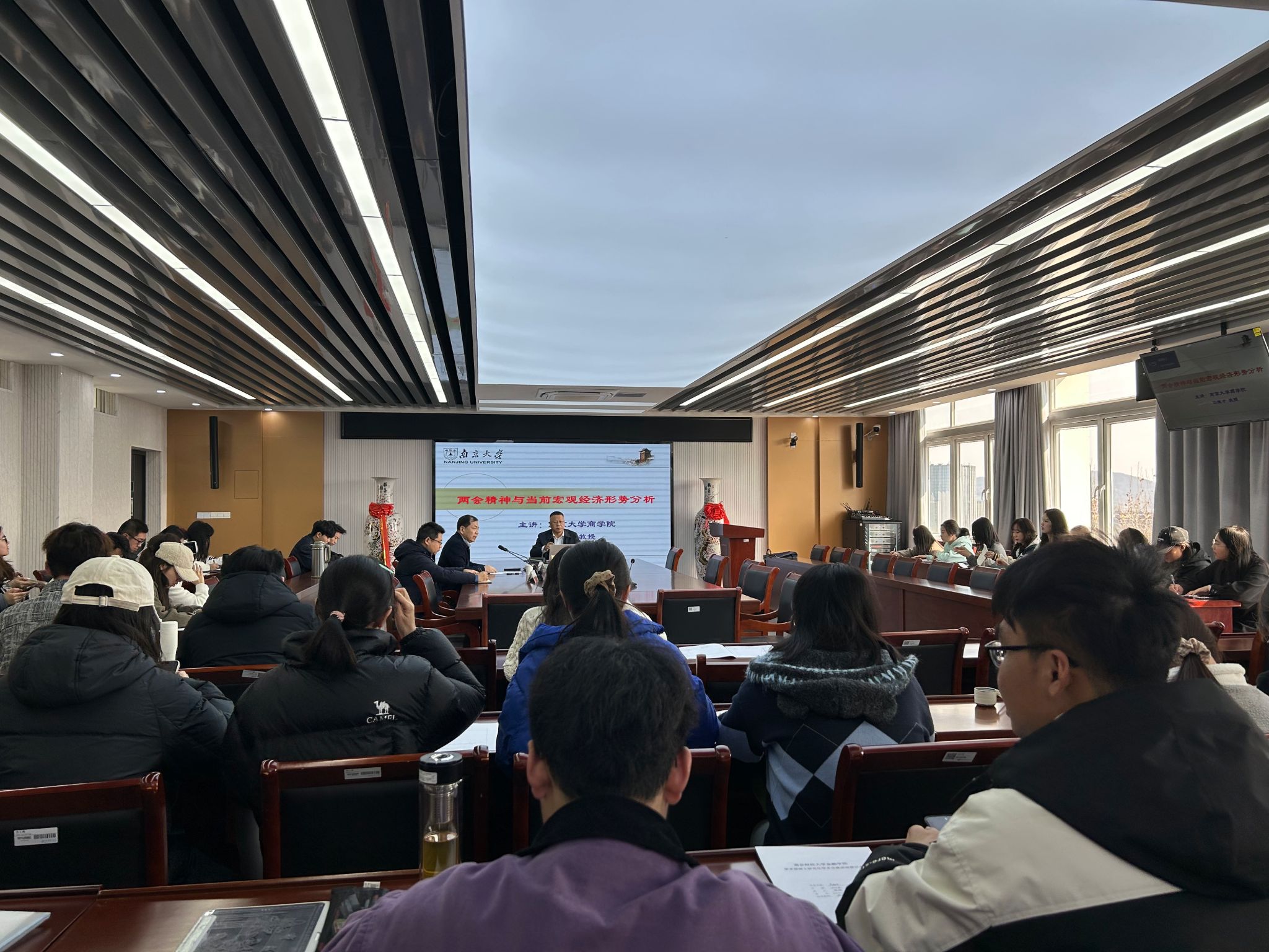 3月19日下午,应西瓜看球 邀请,南京大学商学院杨德才教授在仙林校区德经楼508会议室作了题为“两会精神与当前宏观经济形势分析”的学术讲座。讲座由学院院长宣烨主持。学院部分教师和研究生参加了讲座。杨教授为我们深入解读今年全国两会主要精神,会议认为,过去一年,以习近平同志为核心的中共中央团结带领全党全国各族人民,沉着应变、综合施策,攻坚克难、砥砺奋进,经济运行总体平稳、稳中有进,高质量发展扎实推进,改革开放持续深化,社会主义文化繁荣发展,民生保障扎实有力,生态环境质量持续改善,社会大局保持稳定,中国特色大国外交开创新局面,经济社会发展主要目标任务顺利完成,中国式现代化取得新的重大成就,更加坚定了全党全国各族人民夺取新时代中国特色社会主义新胜利的决心和信心。通过实践可以充分证明,中共中央集中统一领导是做好党和国家各项工作的根本保证,习近平新时代中国特色社会主义思想具有强大真理力量和实践伟力。同时杨教授还就两会精神指出经济大省在落实国家重大发展战略上应有更大的担当。江苏要在长三角一体化发展和长江经济带发展等发展战略中主动作为、协同联动。要加强与京津冀协同发展、粤港澳大湾区建设等战略的对接,深度融入高质量共建“一带一路”,做好援藏援疆等对口帮扶工作。要坚守耕地红线、保护生态环境、确保南水北调水源安全。讲座结束后,杨教授同与会师生进行了深入交流,对大家提出的问题进行了详细解答。杨德才系南京大学商学院经济学系教授、博士研究生导师,南京大学民营经济研究所所长,南京大学赵世良讲座教授。全国政协委员、中国经济社会理事会(全国政协智库)理事,中国致公党江苏省委副主委、中国致公党江苏省参政议政委员会主任、中国致公党中央经济委员会副主任、中国致公党中央委员会委员。学术兼职主要为:全国马克思主义经济学说史学会常务理事、中国经济发展研究会常务理事、中国经济史学会常务理事兼中国现代经济史专业委员会副主任、江苏省民营经济研究会副会长、江苏省《资本论》研究会副会长等。独著、参著著作近20部,公开发表学术论文100多篇,主持、参与数项省部级以上重点(重大)课题,教学与科研数次获得南京大学和省部级奖励,教育部首批“国家级一流本科课程”获得者,并获得南京大学本科生“我最喜爱的老师”荣誉称号。曾任南京大学经济学系主任,政协江苏省委员会第九届委员和第十届、第十一届常委,政协江苏省经济委员会委员等。
