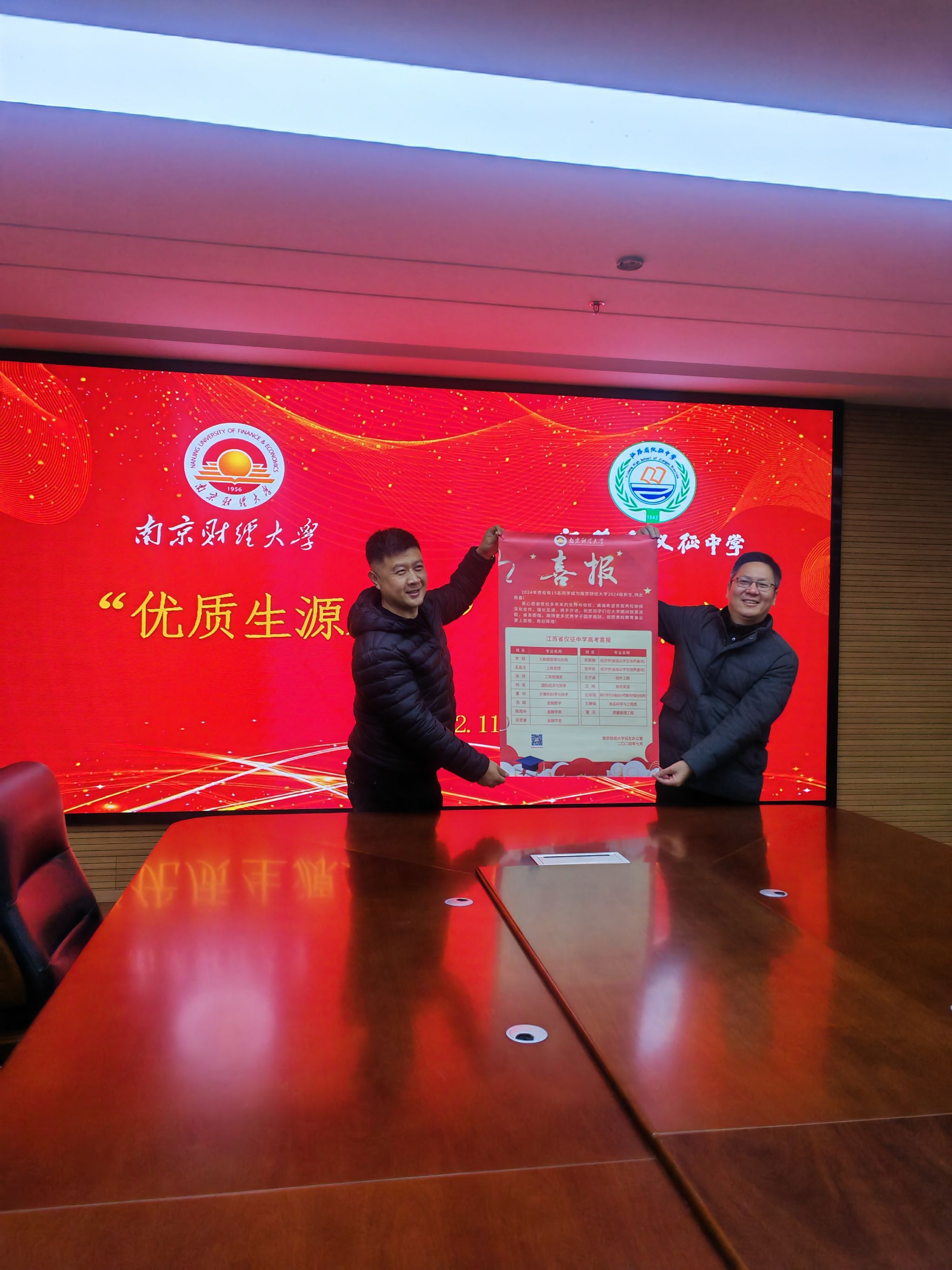 活动中,张士青副书记为仪征中学送来招生录取喜报,并详细介绍了南京财经大学的办学特色、专业设置、招生政策以及近年来在学科建设、科研创新等方面取得的显著成就。团队成员通过生动的案例和具体的数据,向仪征中学的师生们展示了南京财经大学的独特魅力和广阔前景。