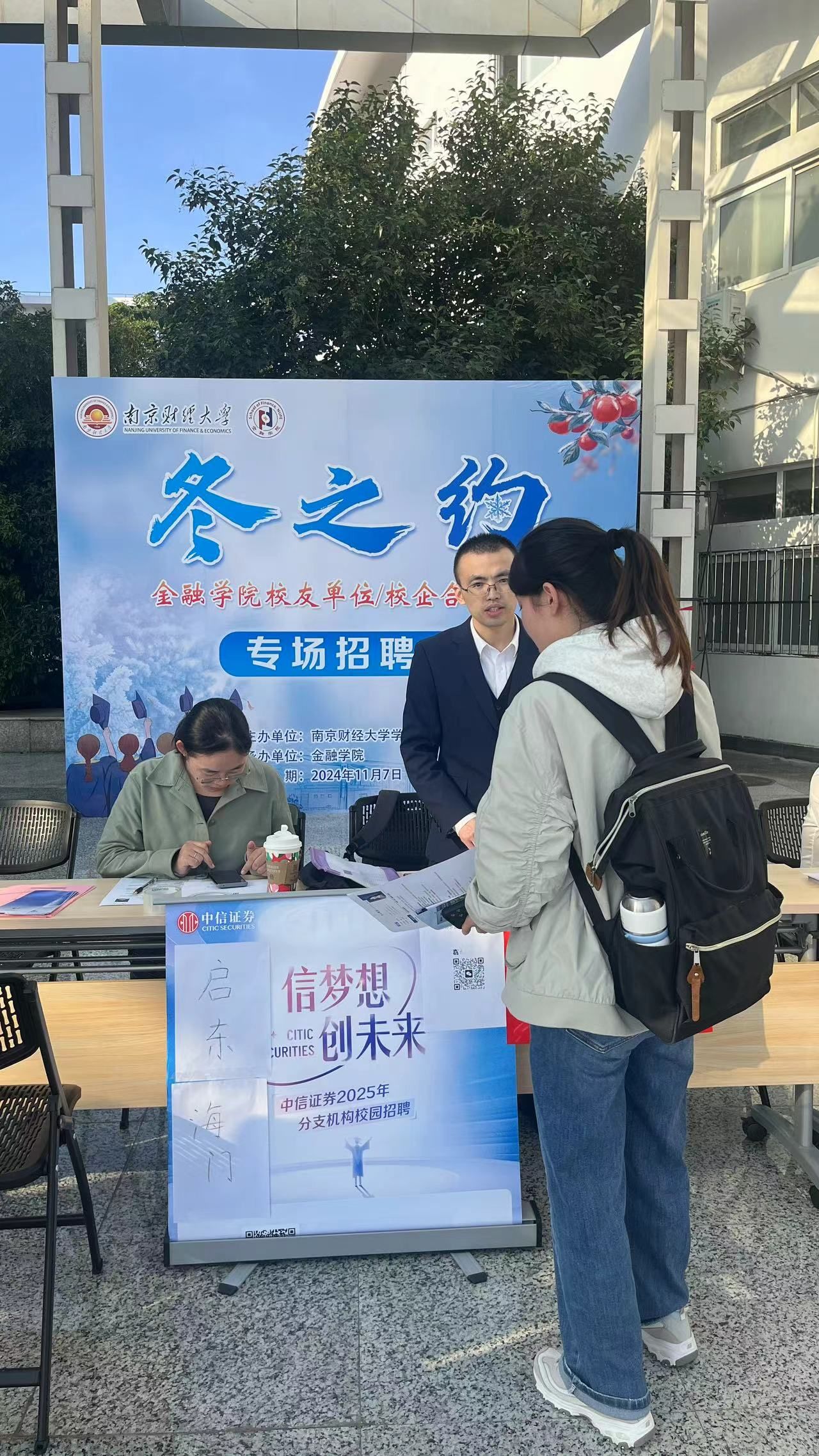 西瓜看球 在大活广场前举办了“冬之约”校友企业及校企合作企业招聘会。此次招聘会吸引了中信证券、东方财富证券、国任财产保险等8家校友企业和校企合作企业的参与,为毕业生们提供了118个多元化的就业岗位和80个实习机会。招聘会上,企业代表们详细介绍了西瓜看球、业务范围及招聘岗位要求,并以校友身份与学弟学妹们进行了深度交流与分享。