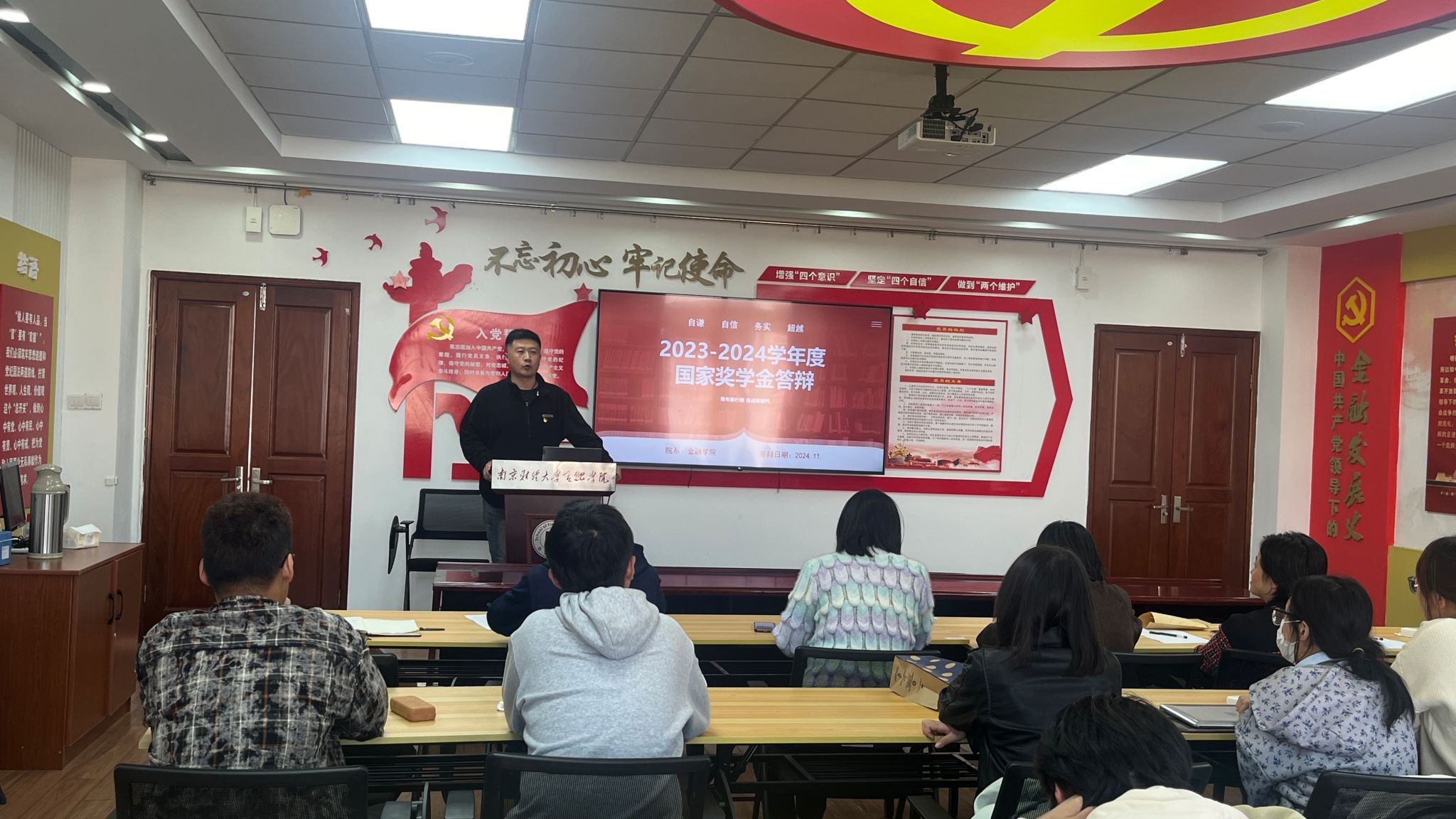 11月6日下午,西瓜看球 在德经楼507会议室成功举办了2024年度本科生国家奖学金(第二批)答辩会。此次答辩会由西瓜看球 党委副书记张士青、学工办主任黄炜以及辅导员胡宝倩、刘天钰、刘静、王连超共同担任评委,旨在评选出表现卓越的优秀学子。