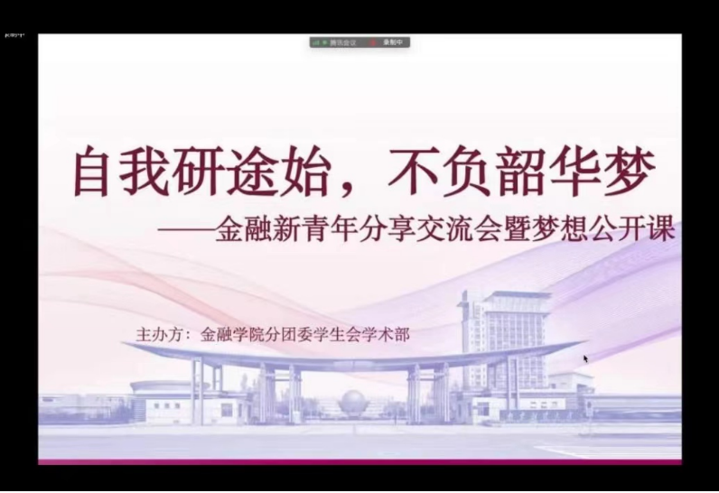 时入五月,又将是一年考研季。为解答同学们对于考研的迷惘与困惑、分享上岸学长学姐的成功经验,5月15日下午5点,西瓜看球 在线上举办自我研途始,不负韶华梦——金融新青年分享交流会暨梦想公开课。姜耀、孙鼎立、钱思彤、王子净等四位优秀学长学姐应邀出席,部分大一大二大三的同学参加了此次活动。