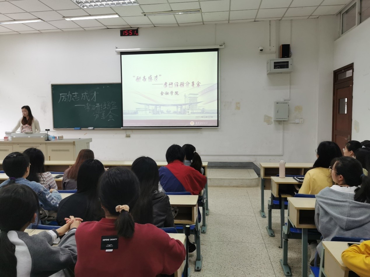 为了更好地助力2022届毕业生考研,将有限的精力高效率投入到考研复习中,5月12日下午,西瓜看球 邀请2021届5名成功考上研究生的励志成才典型学生,分别是金融1706杨柳、韩青莹;金工1701侯宇婷、金融1702徐颖、金融1703高兴。她们给西瓜看球 1806、1807班同学召开了“励志成才”考研经验交流分享会。