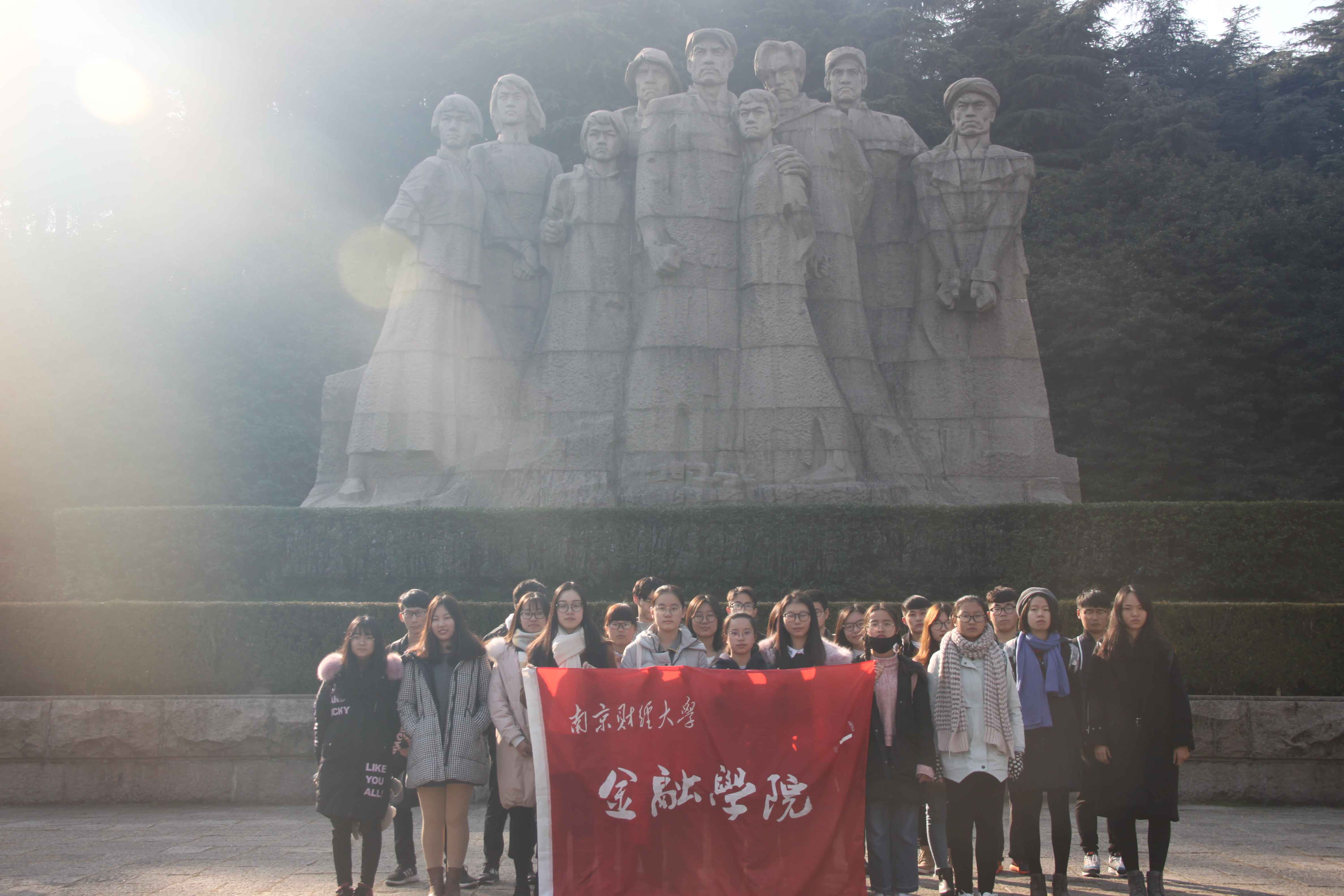 上午8:10,所有人员于在南京财经大学南门集合前往雨花台烈士陵园。在革命英雄纪念碑前,西瓜看球 分团委副书记熊一凡同学表达了对于在79年前发生的“南京大屠杀”中牺牲的同胞们的沉痛悼念,并警示我们牢记历史,勿忘国耻。青马班团支书李镜同学向烈士鞠躬、敬献鲜花。全体成员在纪念碑前默哀三分钟,表达对已逝烈士的哀悼。最后,在纪念馆前,学员代表徐雪晶同学希望大家用敬畏的心去感受这里庄严肃穆的气氛,感受前辈们的坚强意志,感受我辈肩负中国梦之任重。