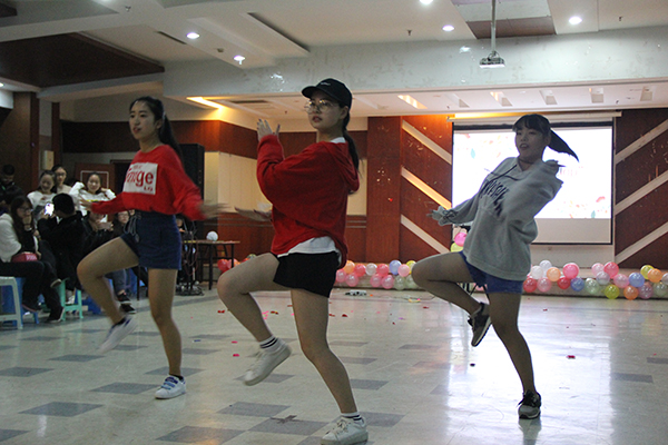 开场秀之后的社团联合节目更是精彩纷呈,社办与体育的联合节目舞蹈《Shake it》,动感的音乐让场上的气氛瞬间高涨。声乐队的歌曲串烧,满满的都是甜甜的滋味,暖暖的气息。分团委和生活权益部的舞蹈《大王叫我来寻山》,舞蹈动作让部员们的萌性爆发。随后的游戏环节,吃货们的主场-吃东西大赛,各部员都卖力的大吃。在观众们的热情的掌声中,宣传与文艺带来了舞蹈《逃跑可耻但有用》,动作的风格淋漓尽致地展现部员们可爱的模样。器乐队的大合奏《辛德勒名单》,让观众们的心随着音乐的起伏而起伏。秘书和学术的舞蹈串烧《uptown funk》,风格独特,是帅气与妖娆的交织。随后,游戏也进入了新的一轮-挤气球大赛,各部门的小部员以默契的配合获得了不错的成绩。Show time开始,礼仪队的T台秀充分发挥了他们的优势-高颜值,灯光为他们亮起,掌声也为他们响起。新闻和外联的节目《谈恋爱不如跳舞》,红色的丝巾也很是性感,部员们的舞姿也很是妖娆。舞蹈队的表演《boom clap》,动感十足,观众也跟着音乐打起节拍。随后的吃芥末大赛,不仅考验部员们的演技,更是考验他们的味蕾与忍耐力。最后的是部长团带来的节目《八戒八戒》,平时严肃的部长们在充满魔性的音乐声中,尽情的展现他们的舞姿,小部员们发出阵阵惊呼。秘书处、外联部、分团委在激烈的竞争中,最终分别获得了第一名、第二名和第三名的优秀成绩。
