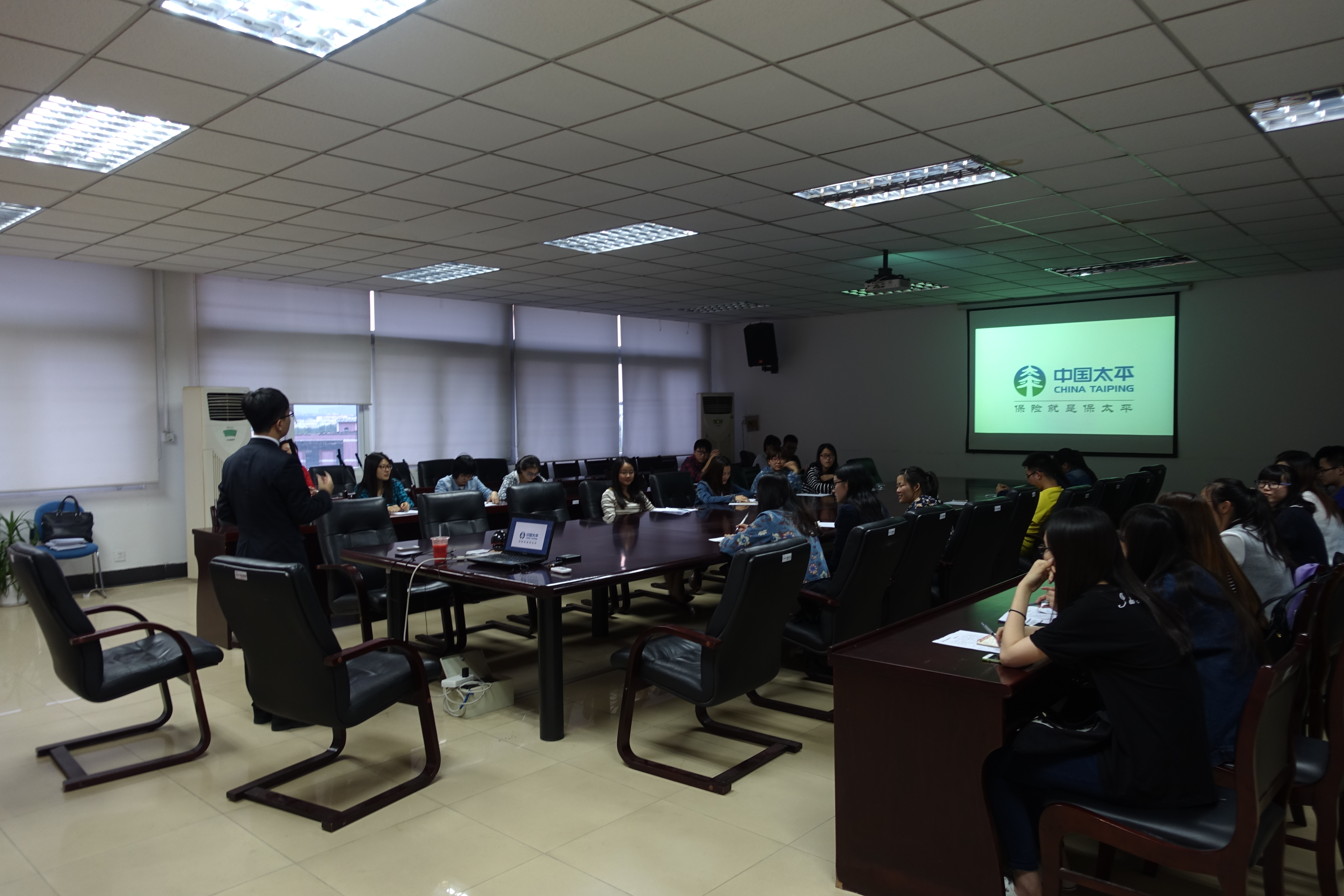 5月17日18:30,中国太平保险集团宣讲会在经济学科楼508会议室正式进行。由太平保险高级经理黄洁主讲,吸引了西瓜看球app 12级、13级想工作实习的数十名同学参加。
