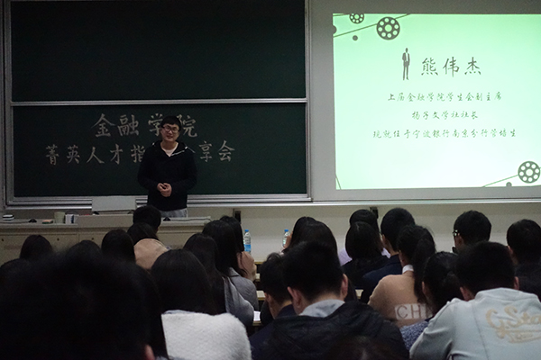 随后给我们带来精彩分享的是上届西瓜看球 学生会副主席、曾任扬子文学社社长的熊伟杰。他认为成功的人有相似的成功,而失败的人有不同的失败经验。学长用自己考研失败的现实案例,对考研、出国还是就业等问题做了深入的分析探讨,同时也向我们介绍了各种选择应当注意考虑的一些方面。比如选择考研的最终目的是为了逃避找不到工作的现实还是内心真的喜欢研究或者是想要弥补大学的遗憾?选择出国怎样考虑其机会成本?选择毕业后直接工作的怎样积累实习经验?深入浅出的交流让现场欢笑连连。