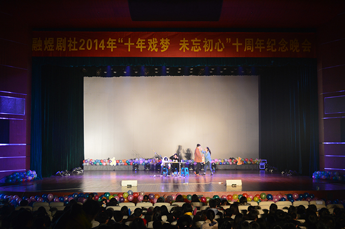 11月29日,融煜剧社2014年“十年戏梦 未忘初心”十周年纪念晚会在仙林校区大礼堂火热开场。现场座无虚席,气氛火爆,欢笑不绝于耳。融煜剧社用十年梦想与热情为观众奉献了一场华丽的视觉盛宴。