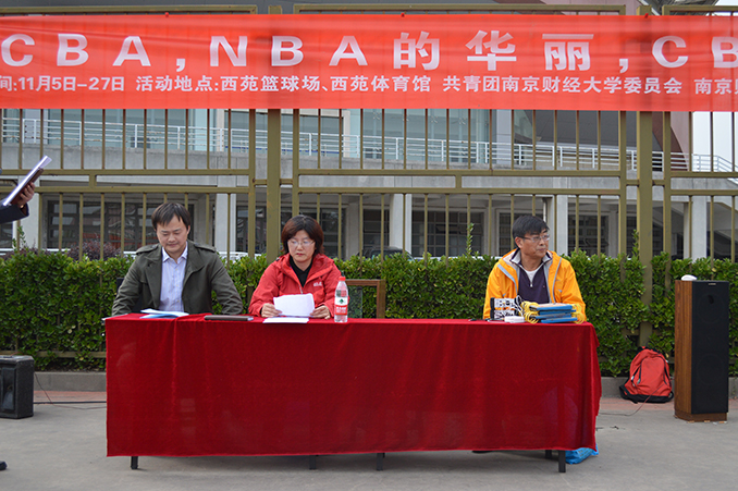 11月5日下午1点,南京财经大学第九届篮球联赛在西苑篮球场盛大开幕。到场嘉宾有副校长邱伟芬,团委副书记张励行,体育部书记徐武。体育部副主任严永军担任此次开幕式的主持人。副校长邱伟芬先就篮球联赛讲话,她着重以本次篮球联赛的口号“碰撞青春,活力篮球”为主题,言语之间透露着对运动员精神的赞赏和对本次篮球联赛的期待。接下来,裁判员代表白冰发言,语句铿锵,一如裁判员们对公正、公平、公开的坚持与守护。运动员代表周政也继此发言,赛出风格,赛出水平,他说出了所有参赛健儿的心声。红色横幅迎风飘展,运动员们摩拳擦掌。最后,在副校长邱伟芬宣布下,南京财经大学第九届篮球联赛正式开幕!