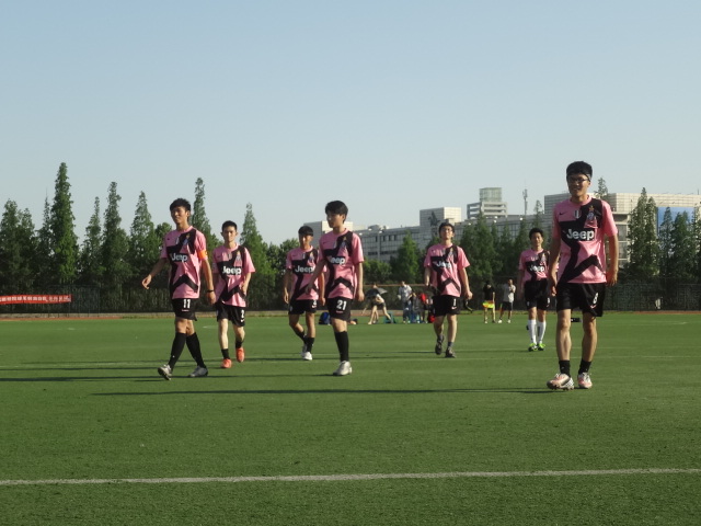 由于是金融队的最后一场比赛,大家都本着享受比赛的原则,心态十分好,队内保持着一贯的愉快融洽。刚开场,金融队就创造了一次机会,陆骁哲的一次打门因为力道不够被门将稳稳抱住。第20分钟,陆骁哲凭借队友配合和超强的个人能力一脚攻破对方大门,1:0!第28分钟,王安带球一路突破来到前场,一记传球,球正好来到陆骁哲脚下,陆骁哲当即起脚打门,对方守门员及时做出反应解围。上半场金融1:0领先。