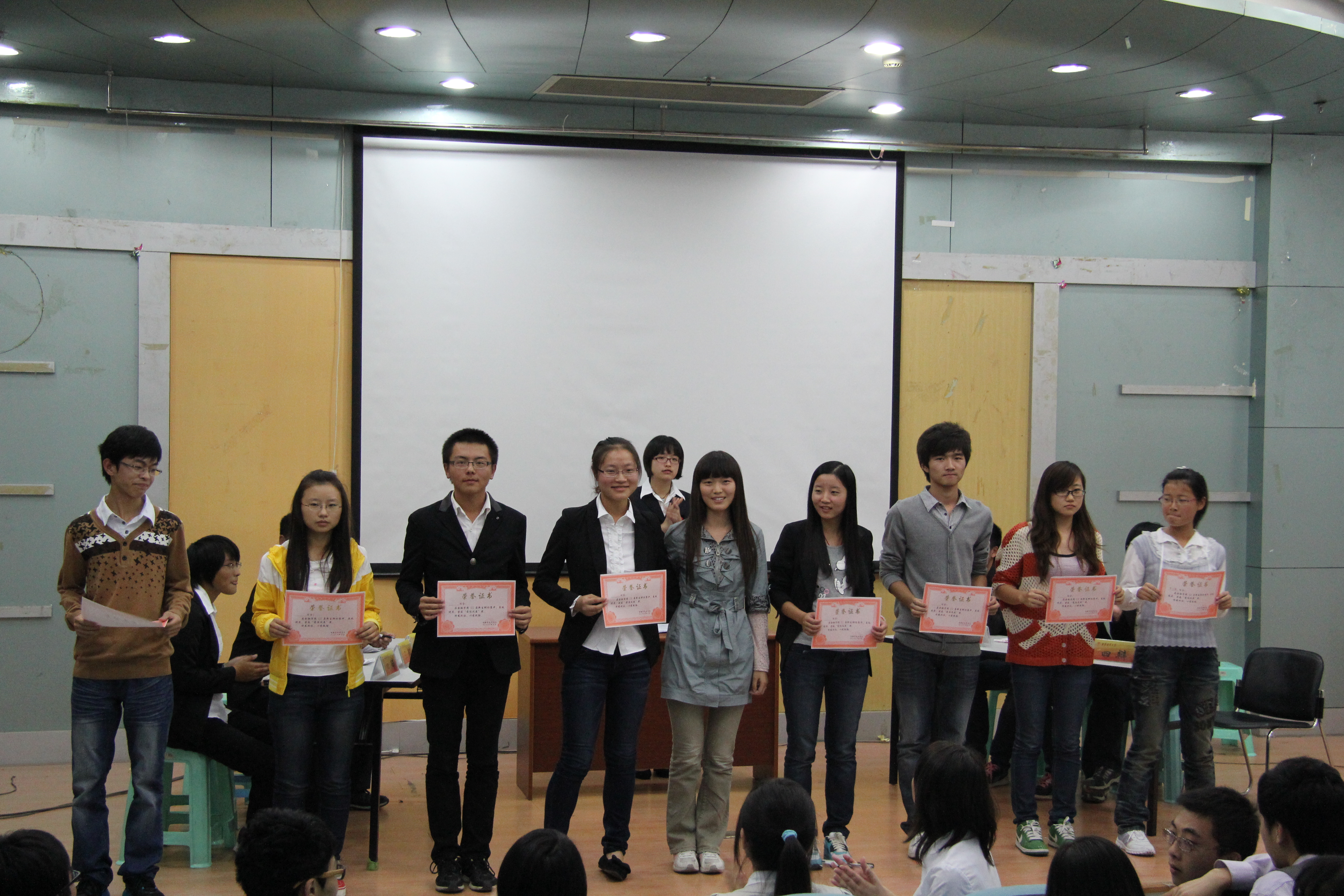 首先,杨虹老师带来了热情洋溢的开场致词,饱含着对选手们的期望。随后,西瓜看球 辩论队的学长们开始一场妙趣横生的表演赛,主题为热播剧《步步惊心》中四爷和八爷谁为最佳配偶,将现场气氛推向了一个高潮。晚19:30总决赛正式开始。正方为金融工程2班,辩题为去向哪里比与谁同行更重要。反方为金融工程3班,辩题为与谁同行比去向哪里更重要。比赛环节分为四步:正反方一辩陈词,正反方对辩,自由辩论,正反方辩手总结陈词。正方认为大众式的人生千篇一律,有明确的目的更重要。反方则认为没有与谁同行的客观环境,何来去向哪里的主观认识。双方辩手灵活的思维和缜密的逻辑推理,不时的赢得场下阵阵掌声。面对金工三班的引经据典,旁征博引,金工二班辩手们则巧用四两拨千斤的方法,一次一次化险为夷,击破对手的观点。双方你来我往,据理力争,给观众带来了一场精彩绝伦的辩论赛。经过评委的商议,获胜方为正方——金融工程1102班,最佳辩手是反方二辩张杰,最佳风度辩手是正方二辩郭翰为。赛后,我们对最佳辩手张杰进行了采访。她表示这次比赛是一次人生的磨砺,获奖并不重要,关键是团队共同努力付出过。