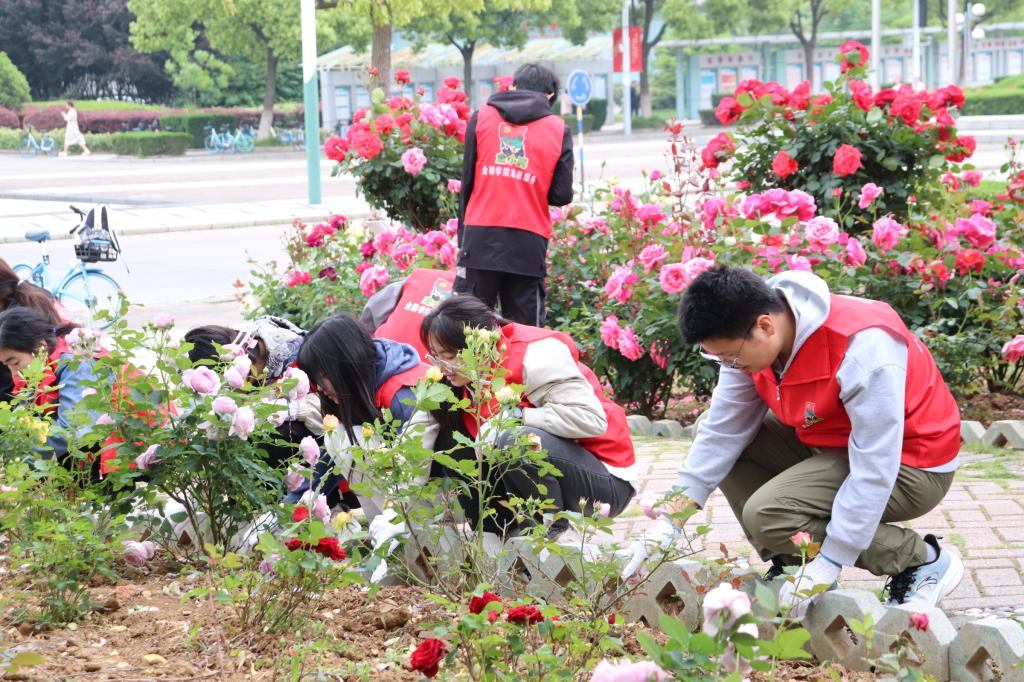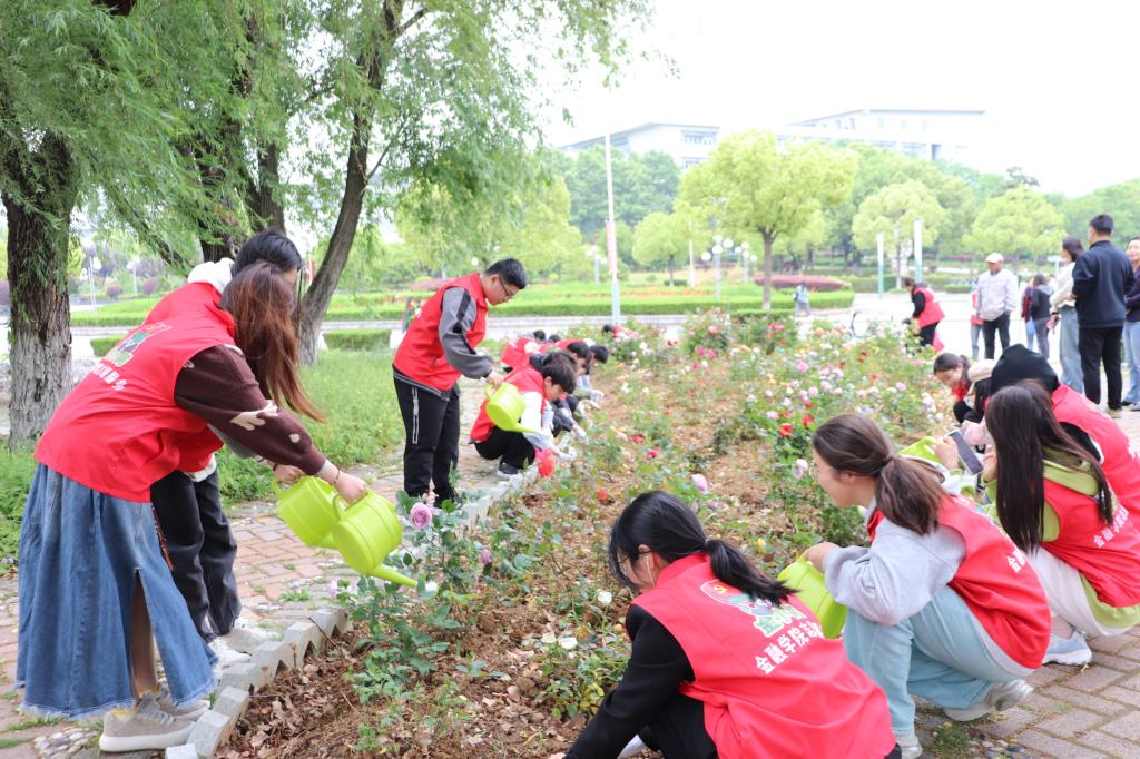 江南五月,清香弥漫,南京财经大学“融勤花园”里月季绽放鲜艳多彩,让师生流连忘返。4月30日中午,西瓜看球 “金小鳄”劳动教育基地挂牌仪式在这里举行,将校园全员合作劳动教育育人落实到实处。