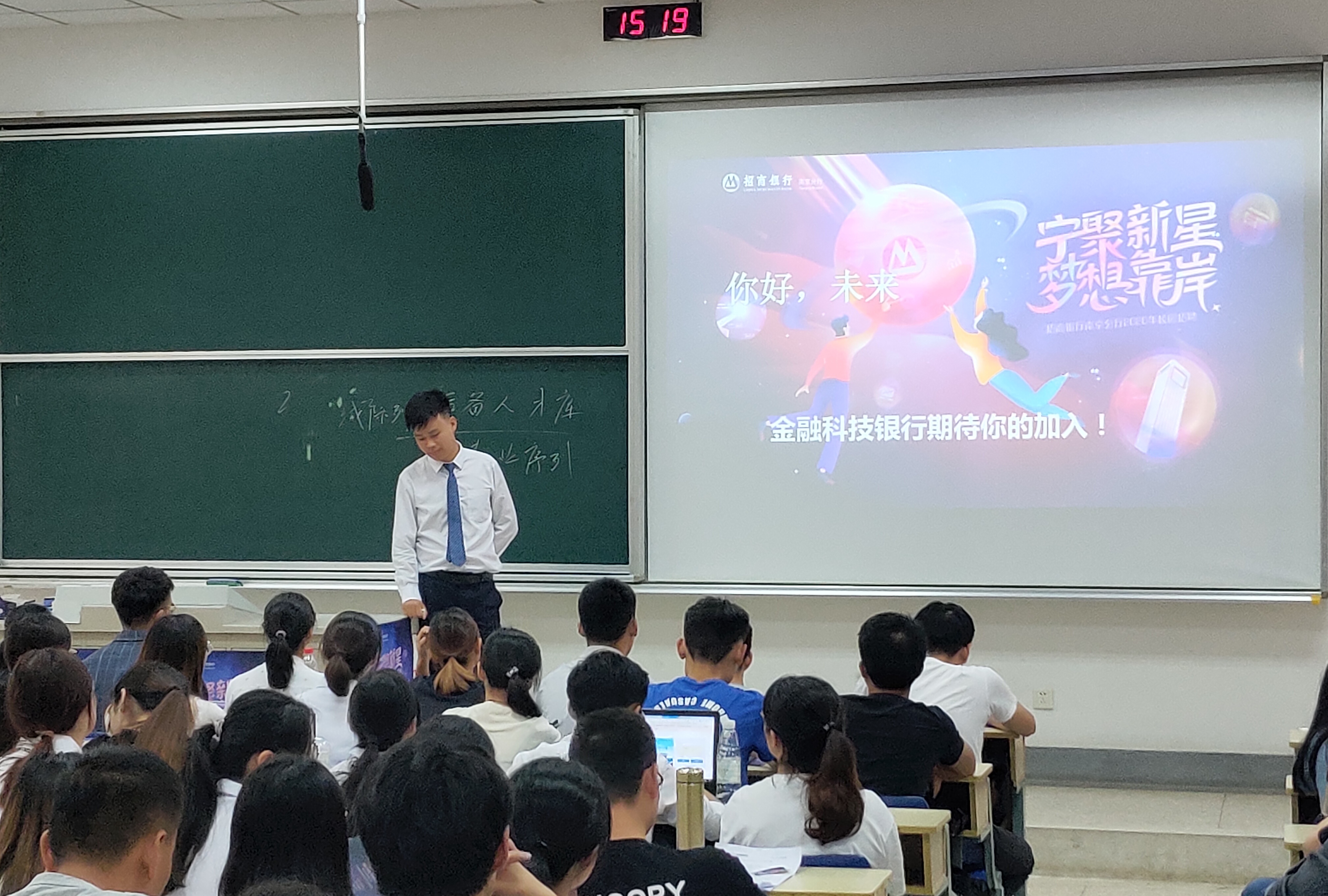 9月27日下午,招商银行南京分行招聘宣讲会在德经楼114室举行,人资主管王经理担任本次宣讲会的主讲人。