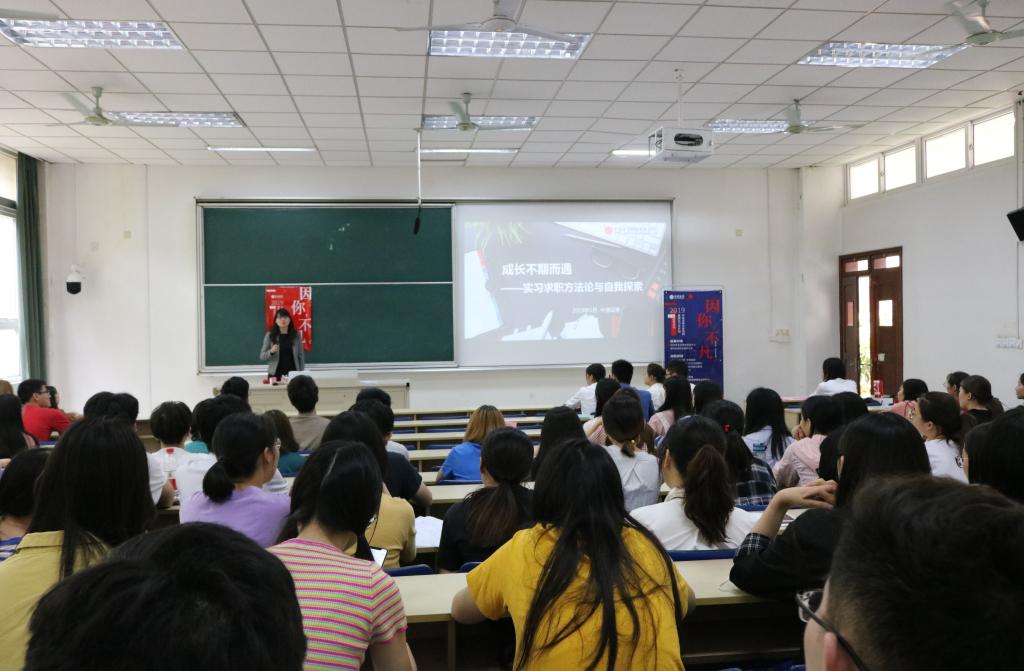 讲座伊始,王总监讲述了求职、实习的重要性,还从对自己负责、关注企业、高效工作、关注细节、具有核心竞争力等五个角度阐述了同学们如何更好地进行实习求职。随后,她介绍了中信证券分支机构2020暑假实习生的招聘流程以及实习生未来的发展方向。