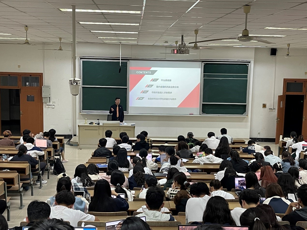 10月23日和26日晚,应西瓜看球 邀请,江苏安立丰控股集团董事长、江苏省产业教授张霆辉在南京财经大学仙林校区博观楼JB302给2023级全体本科生作了题为“金融导论”的通识教育讲座。投资学系主任翁辰老师及部分学院青年教师参加了讲座。