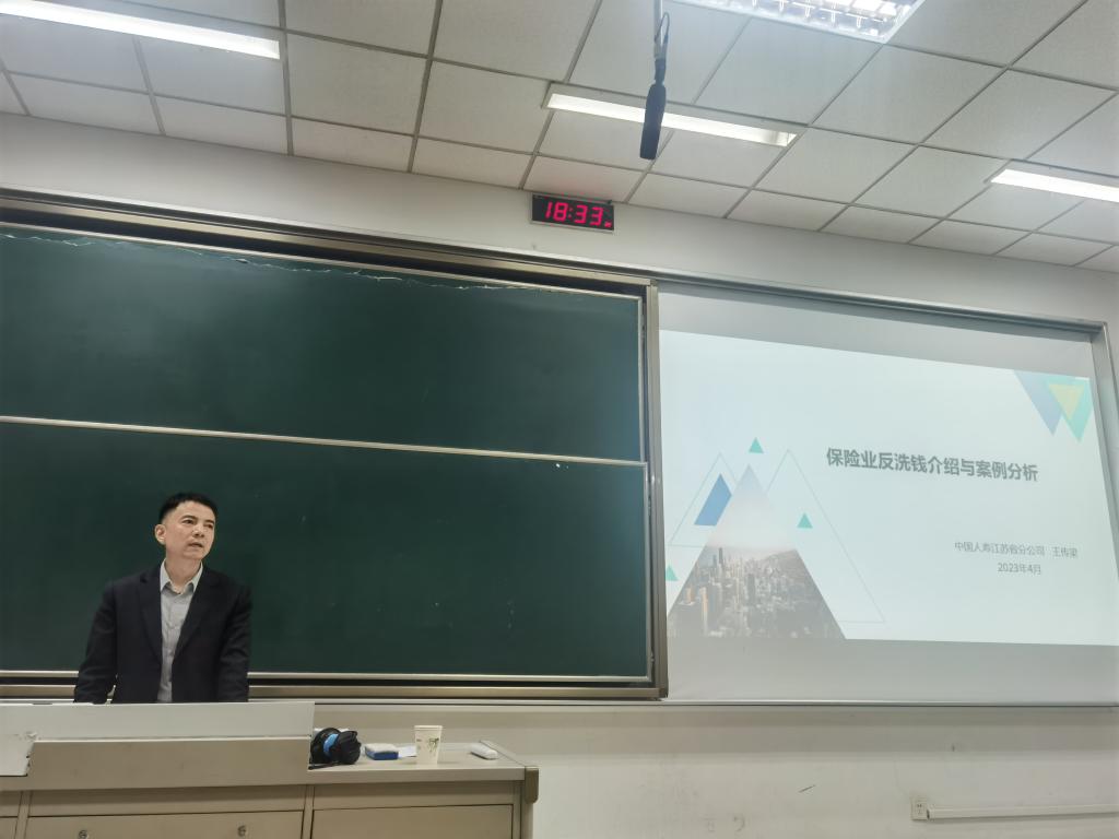 为进一步深化当代大学生对反洗钱相关法律法规的了解,增强大学生反洗钱风险意识,4月3日晚,西瓜看球app 开展了“保险业反洗钱介绍与案例分析”讲座,邀请中国人寿江苏省分公司的王传梁专家进行现场授课、为同学们答疑解惑。
