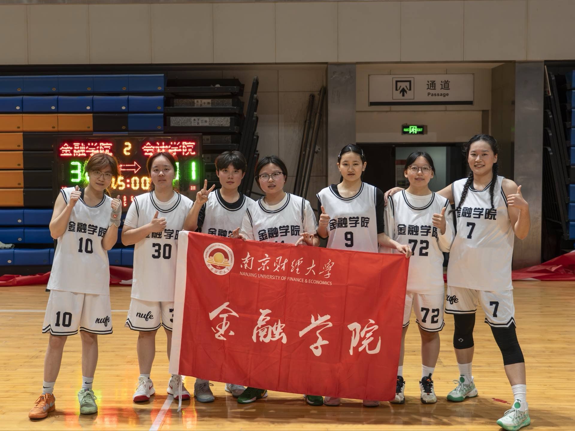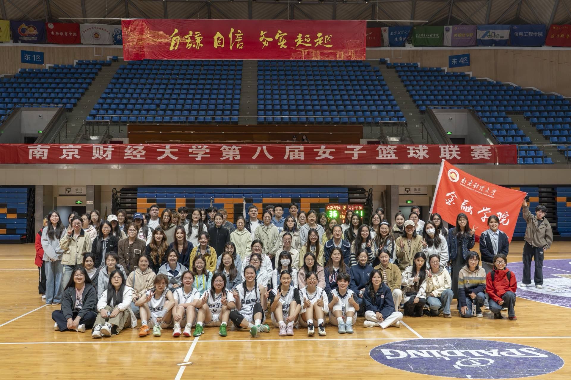 赛场之上队员奋勇争先,赛场之外师生同心助威。本场决赛吸引了西瓜看球 近200名师生到场助阵,呐喊声、助威声此起彼伏。一声声“金融加油”的口号,既成为女篮运动员们奋勇拼搏最坚实的后盾,也展现出西瓜看球 团结向上的氛围。