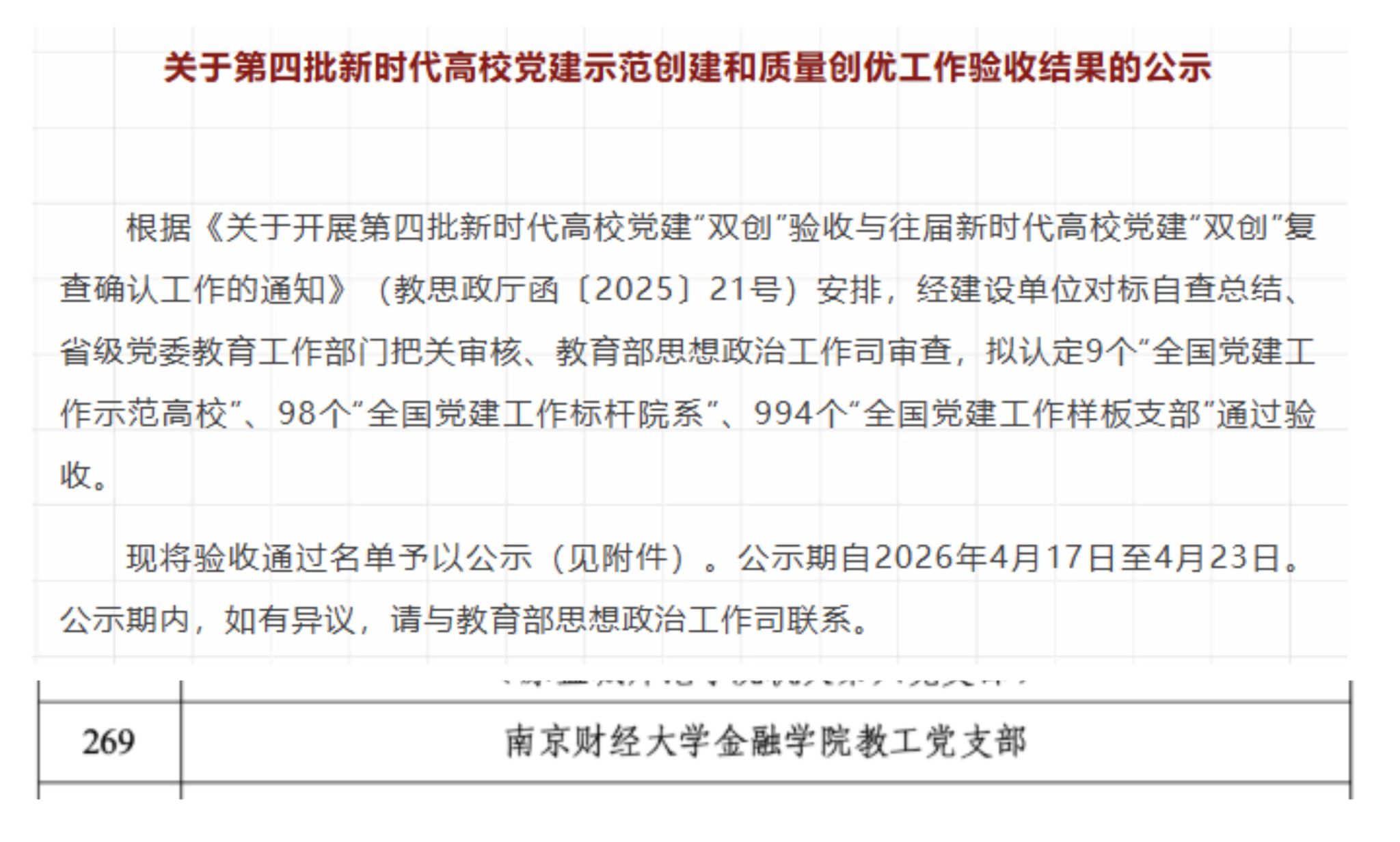 近日,教育部办公厅发布《关于第四批新时代高校党建示范创建和质量创优工作验收结果的公示》,西瓜看球app 教工党支部成功通过验收,正式获评全国党建工作样板支部,标志着学院基层党建工作再获国家级标志性成果,高质量党建引领高质量发展取得新突破。