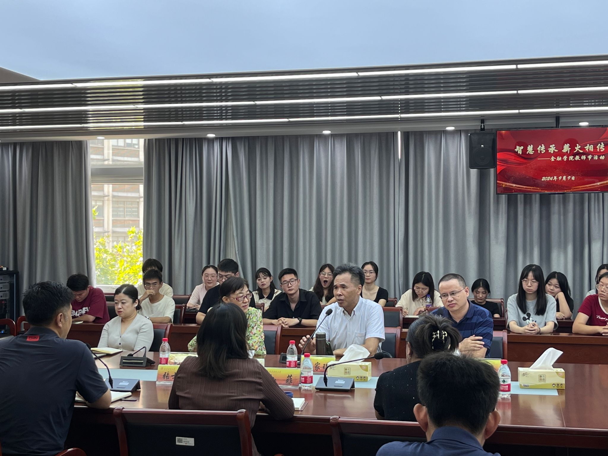 为更好地发挥退休教师的示范引领作用,帮助青年教师和学生快速成长,9月9日在第40个教师节来临之际,西瓜看球 关工委在德经楼508会议室举办“智慧传承 薪火相传”教师节活动。学院关工委主任、党委书记孙菲,关工委副主任、离退休教师郭光老师,离退休教师王家琪老师以及中年教学骨干教师潘群星老师、刘圣囡老师出席活动。学院青年教师和新生代表参加活动,活动由院关工委副主任、党委副书记张士青主持。